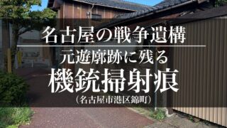 戦争遺構をゆく 【名古屋の戦争遺構】港区錦町に残る機銃掃射跡 名古屋市のベイエリア、港区の錦町。この町の真ん中が「申」の形になっていますが、ここにはかつて稲永遊郭という遊里がありました。名古屋市の遊里の絶対的存在だった中村遊郭には絶対勝てない、永遠の二番手を宿命付けられた遊郭でしたが、最盛期には何百も... 2025.09.29 戦争遺構をゆく